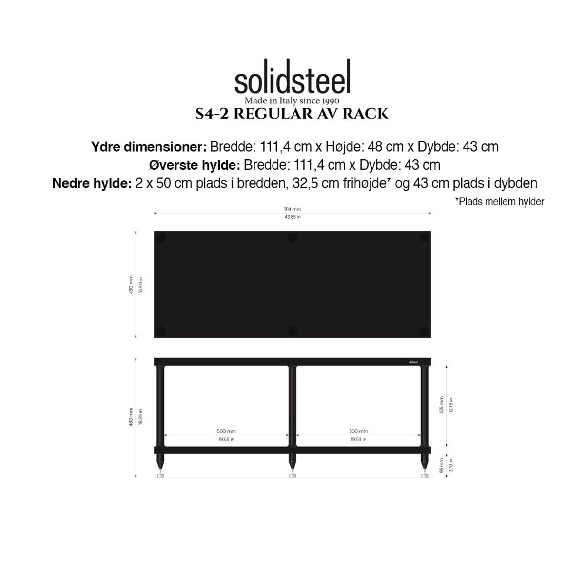 S4-serien fra Solidsteel er den oplagte løsning til dig der har flere separate Hi-Fi-apparater, og eventuelt spilkonsoller, Blu-ray afspiller, mm. Dette klassiske AV-rack har plads til eks. forforstærker, monoblokforstærkere, CD-afspiller, DAC og lignende. Afhængigt af behov kan S4-serien vælges med 2, 3 eller 4 hylder. Hver hylde har en maksimal bæreevne på 110 kg.