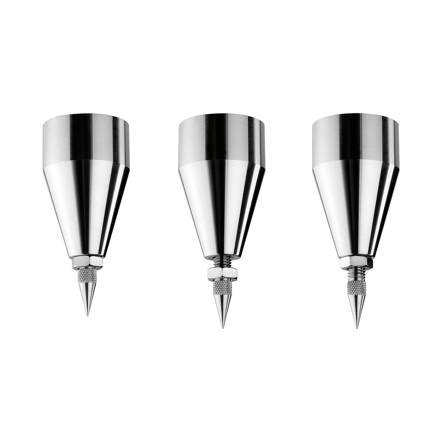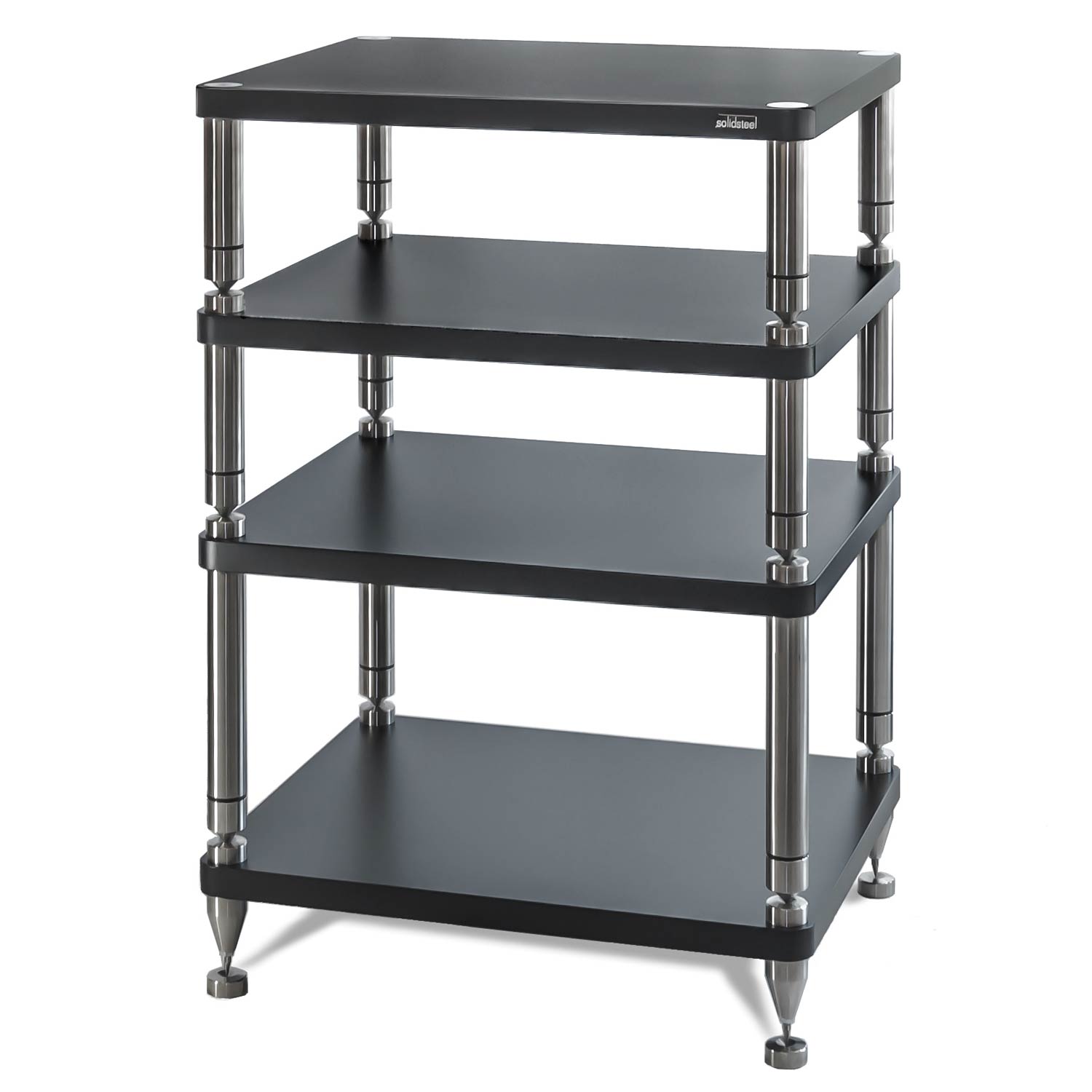 Møblet står på spikes for optimal afkobling fra gulvet og der medfølger spike-underlag til brug på trægulv. Hver hylde har en bæreevne på 70 kg, som er nok til selv meget seriøse forstærkere.