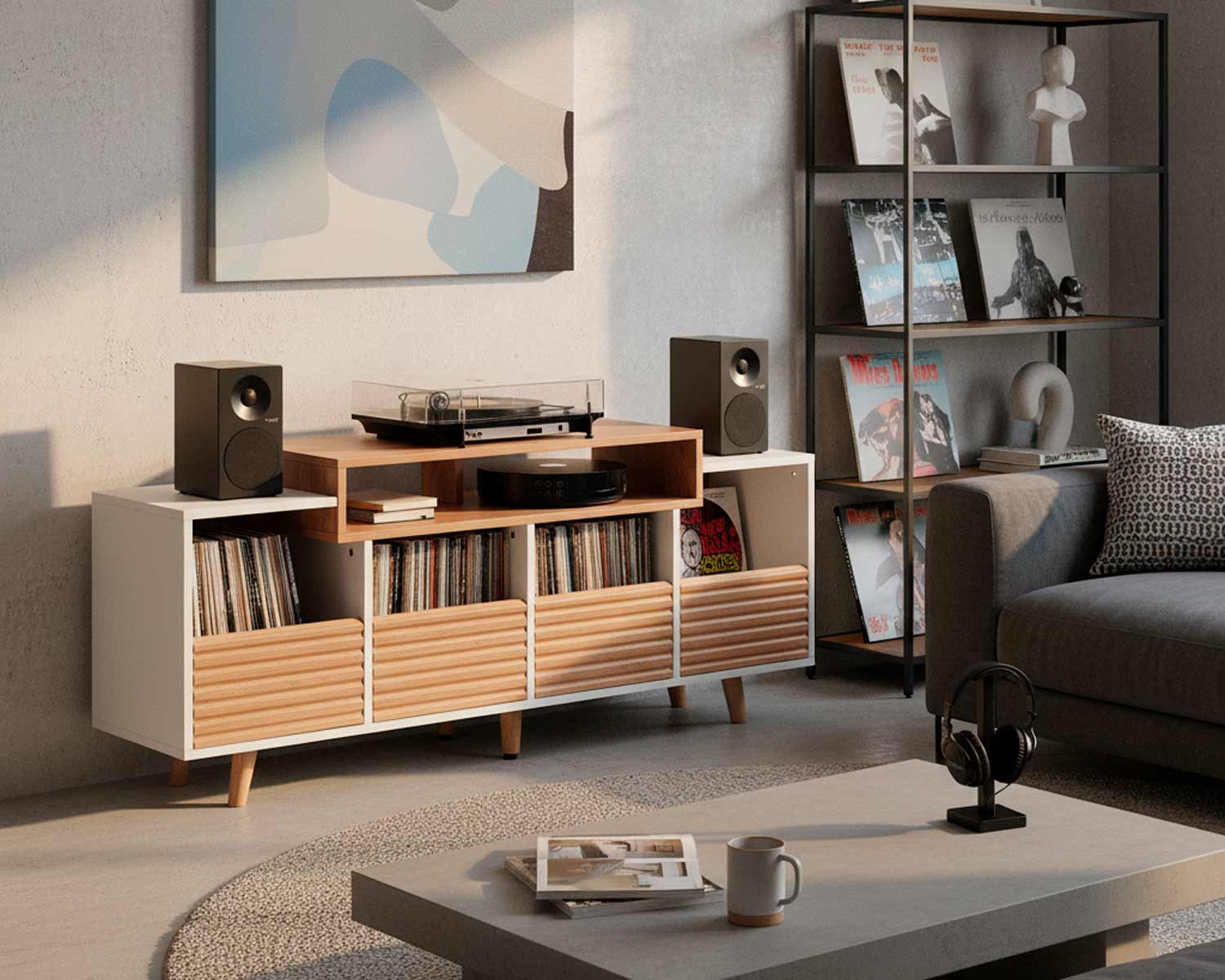 Med et stilrent og enkelt design, og let adgang til at bladre i vinylsamlingen, er Norstone Oslo 1600 det oplagte møbel til vinylplader. Der findes masser af møbler hvori man kan opbevare vinylplader, men langt størstedelen er lavet så pladerne står med ryggen udad. Det er meget nemmere at finde den LP man leder efter når man i stedet kan bladre gennem samlingen. Og det er præcist hvad Norstone Oslo 1600 er skabt til. Her får du et kompakt og elegant møbel med opbevaring af LP’er i dertil indrettede skuffer som let trækkes ud, så der er fuld adgang til musiksamlingen.