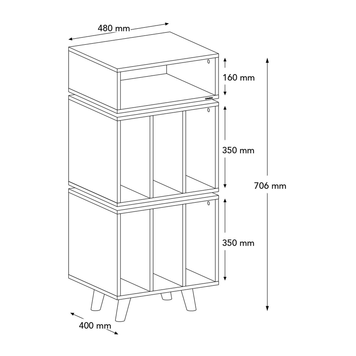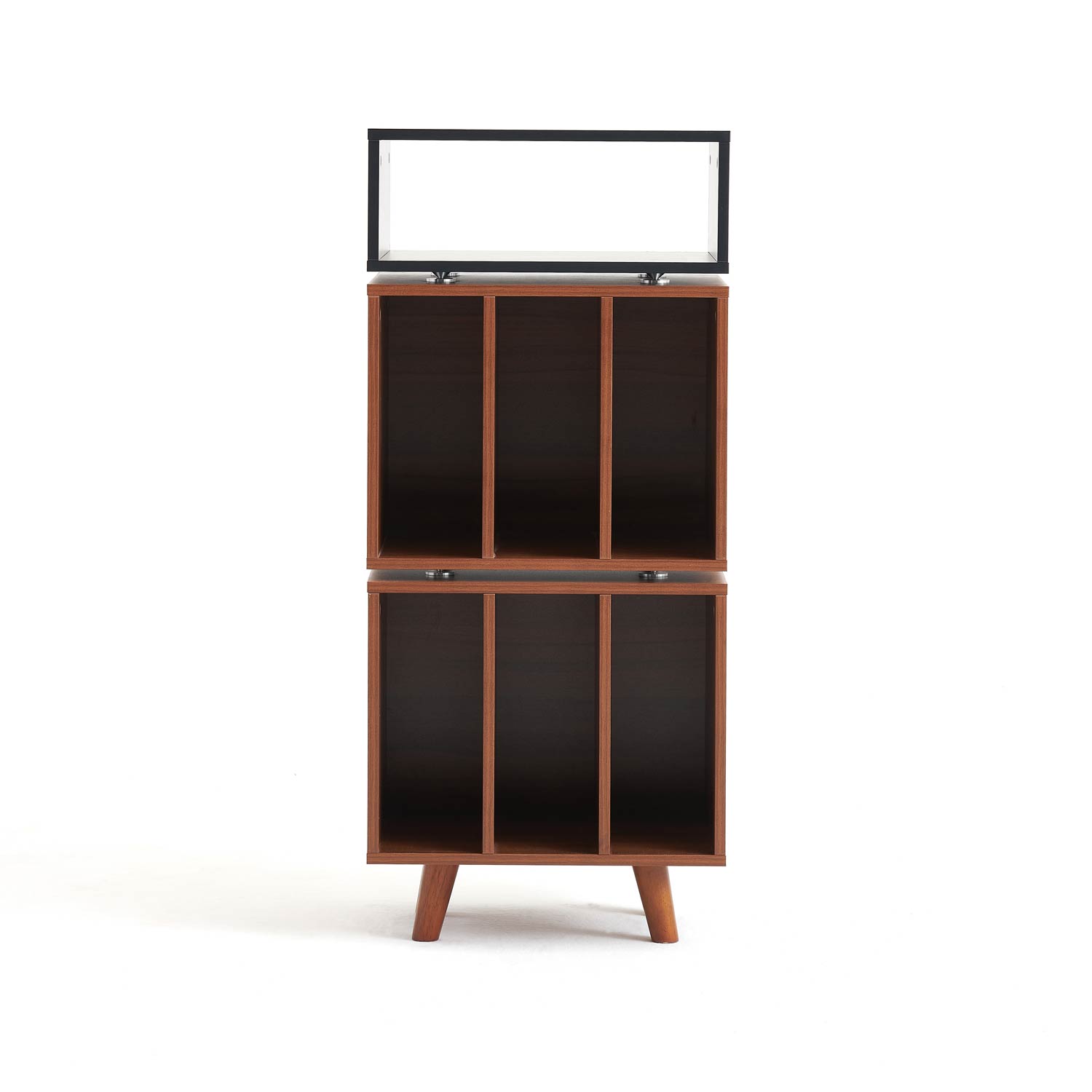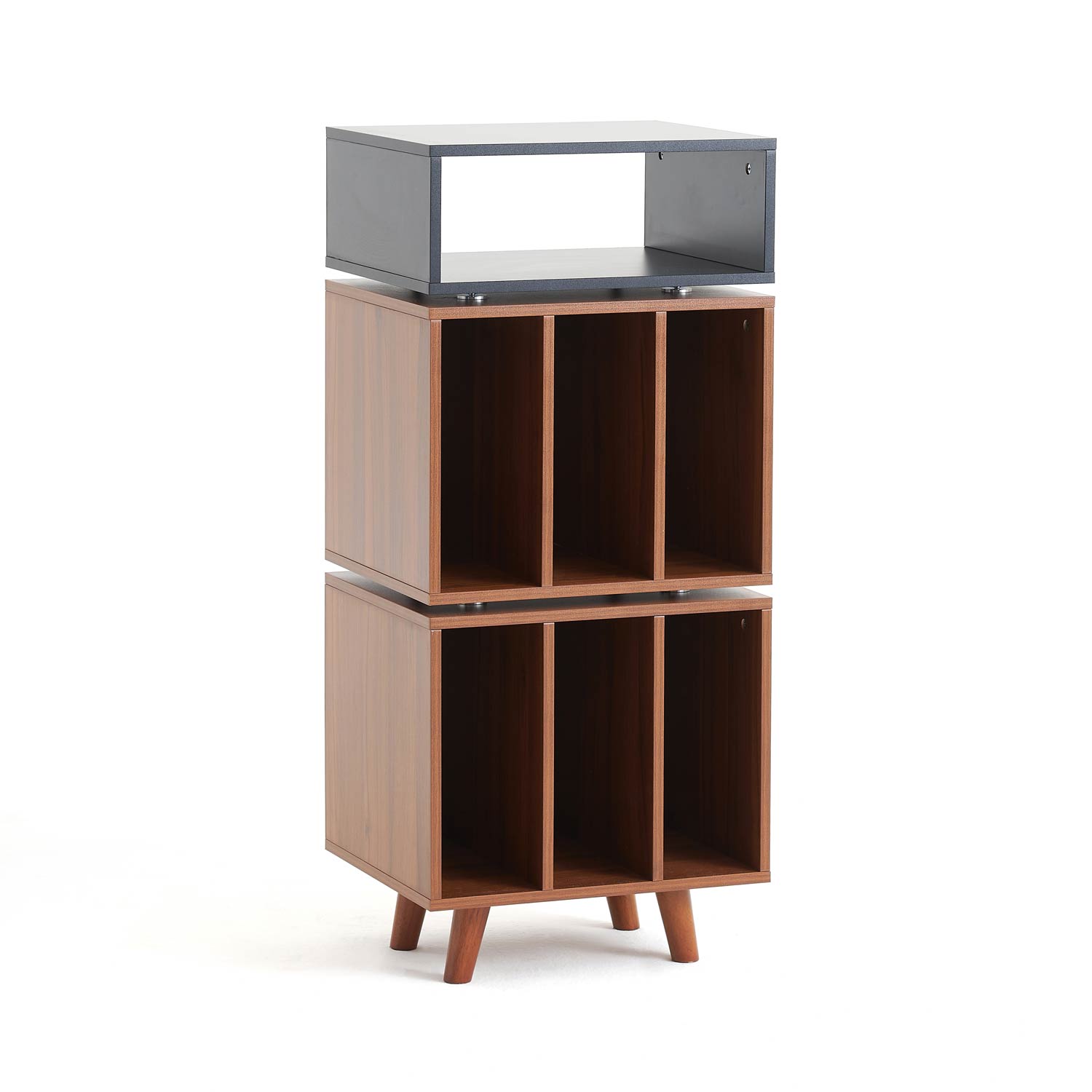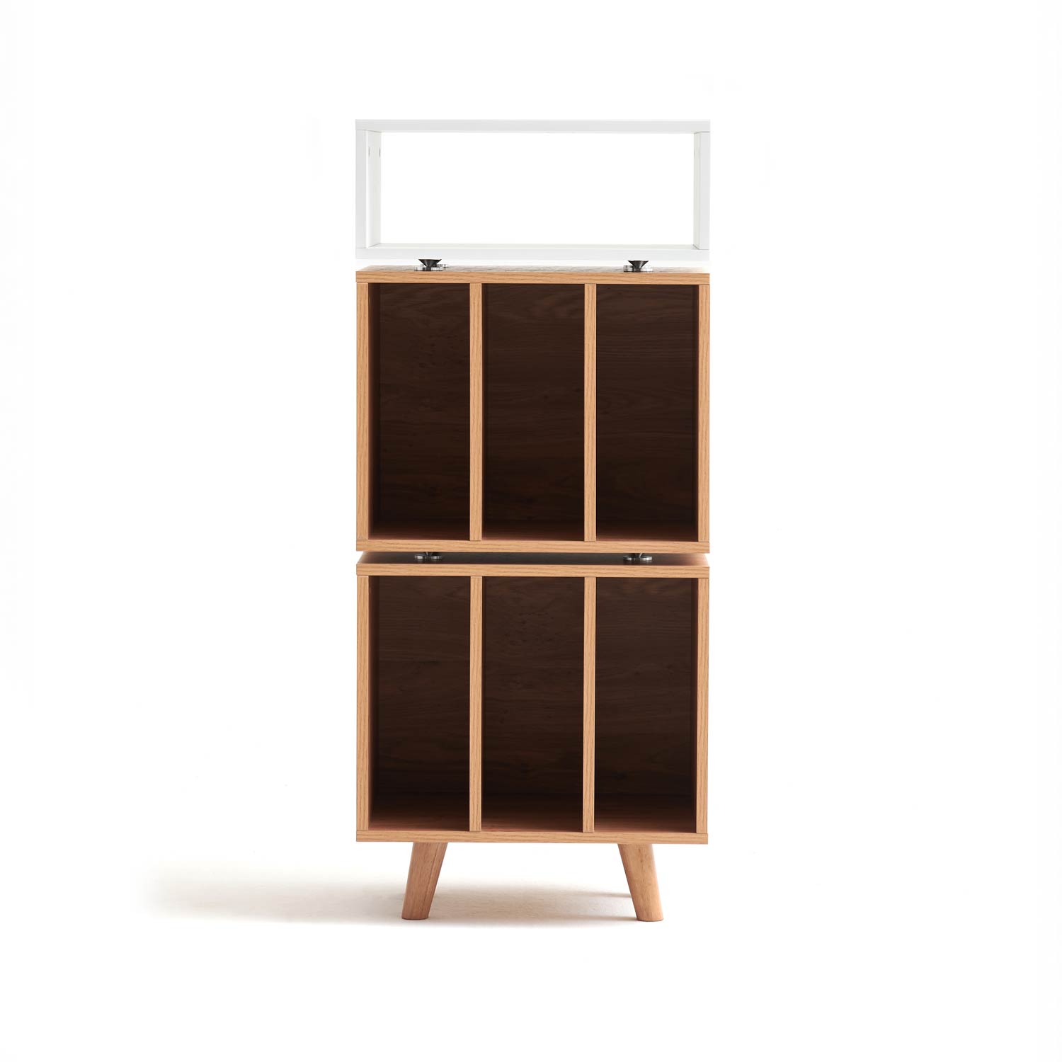 På toppen af møblet er der plads til en pladespiller og umiddelbart nedenfor, kan du placere en forstærker, med let adgang til betjening. Den øvre del af møblet er afkoblet med spikes for reduceret overførsel af vibrationer mellem delene. Den nederste del af møblet har plads til vinylplader, ca. 160 styk, med en samlet maksimal vægt på 60 kg. Den øverste del af møblet har en bæreevne på kombineret 20 kg.