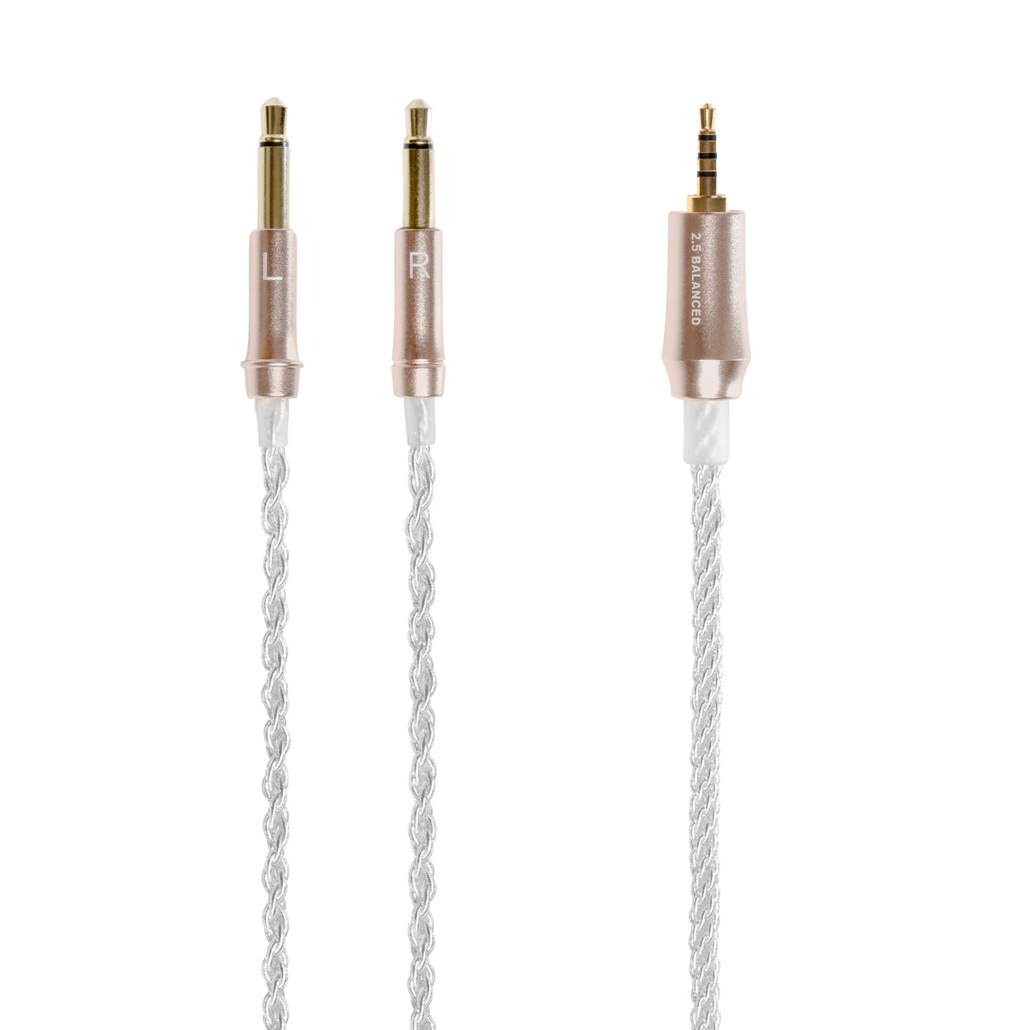 Opgraderingskabel til Meze 99 Classics og Meze Liric. Monteret med 2.5, 3.5 eller 4.4mm stik i forstærkerenden og 2 x 3.5mm i hovedtelefonenden. Kablet er fremstillet i flettet OFC-kobber belagt med sølv og monteret med rhodiumbelagte stik (guldbelagt for 4.4mm versionen) for optimal forbindelse.
