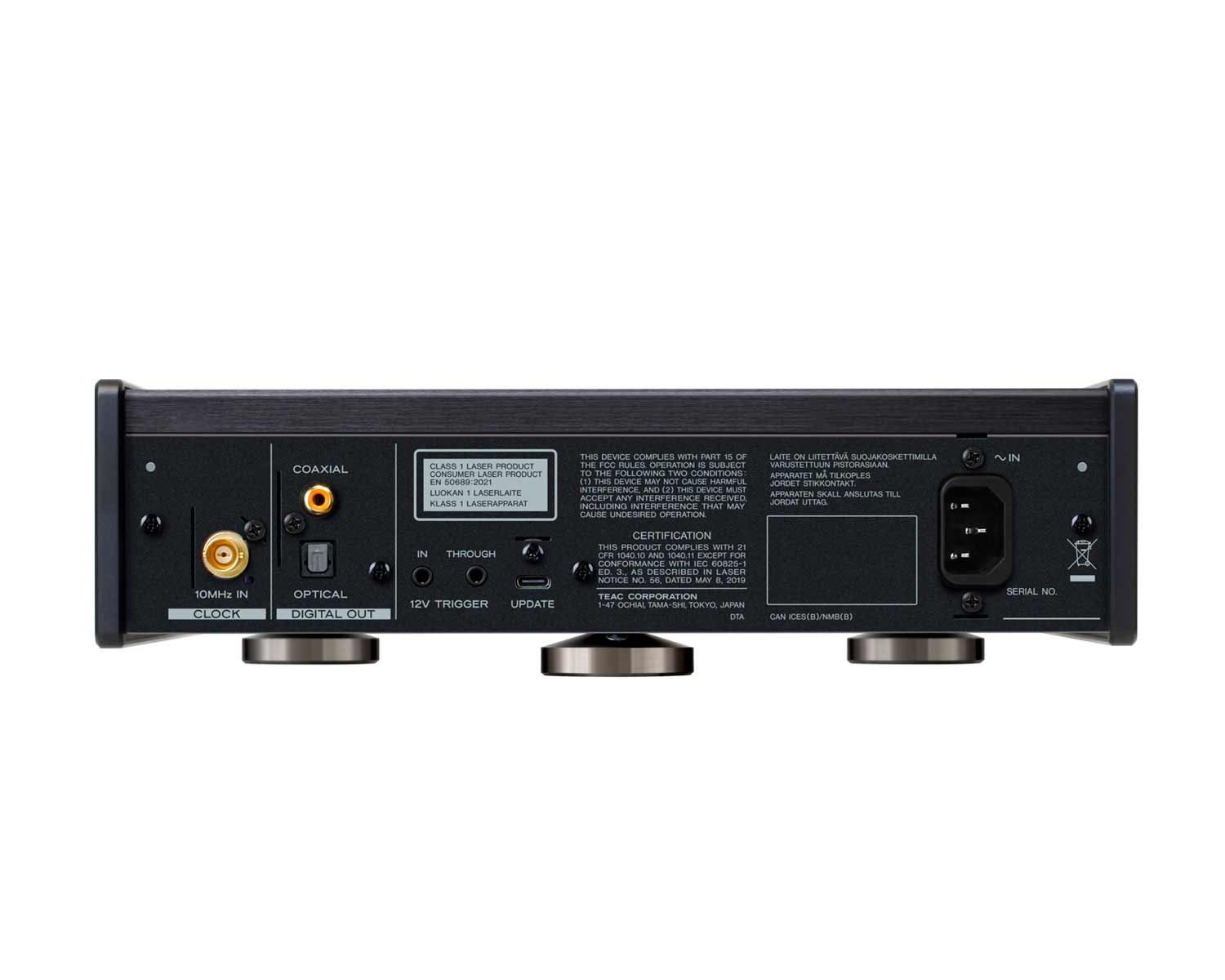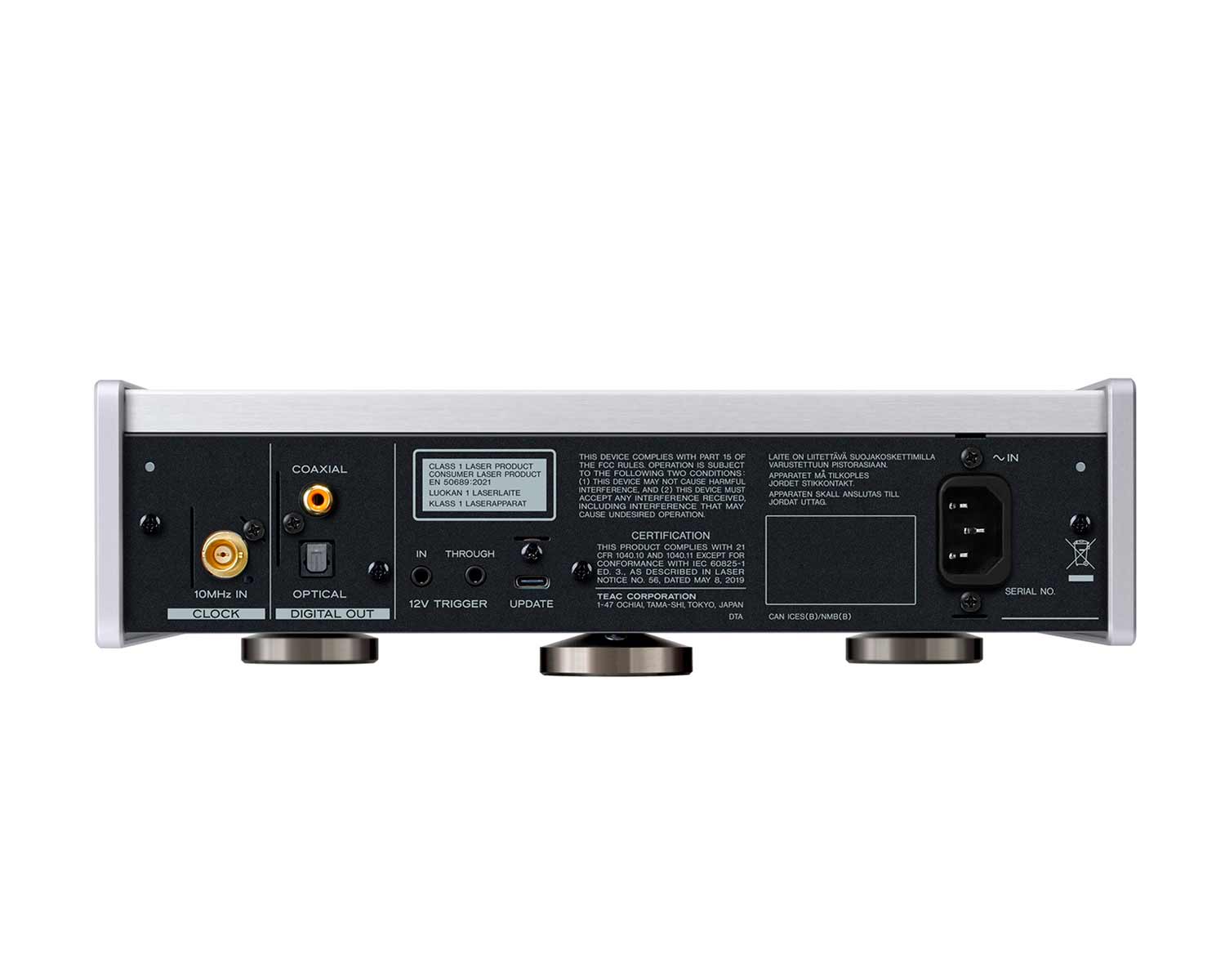 Strømdelen i TEAC PD-507T er baseret på en ringkernetransformator, som føder de respektive strømforsyninger. Der er hele fire strømforsyninger i PD-507T, med en til OLED-displayet, en til CD-værket, en til styringskredsløbet og en til lydkredsløbet. Digitaludgangene strømfødes separat og en ubrugt udgang kan slukkes for reduceret påvirkning af de øvrige kredsløb. I det hele taget, er der foretaget en lang række valg i udviklingen af dette drev, som sikrer at det endelige resultat fra CD’erne, bliver leveret på bedst mulig vis til det digitale udgangstrin. Her er det bestemt også værd at nævne den interne clock, som er afgørende for det niveau af jitter som kan opstå ved håndteringen af det digitale signal. TEAC har i PD-507T benyttet en krystaloscillator med lav fasestøj, som sikrer mindst mulig forskydelse i tidsdomænet, hvilket er helt afgørende for præcisionen af det signal din DAC skal håndtere. Hvis du vil have den absolut bedste ydelse fra PD-507T, kan du kombinere den med TEAC’s eksterne Master Clock Generator CG-10 MA-X, da apparatet har en dedikeret 10Mhz clock-indgang. Det er noget vi ser ekstremt sjældent i denne prisklasse, og noget der kun kan tilskrives TEAC’s erfaringer med ultra-High-end mærket Esoteric.