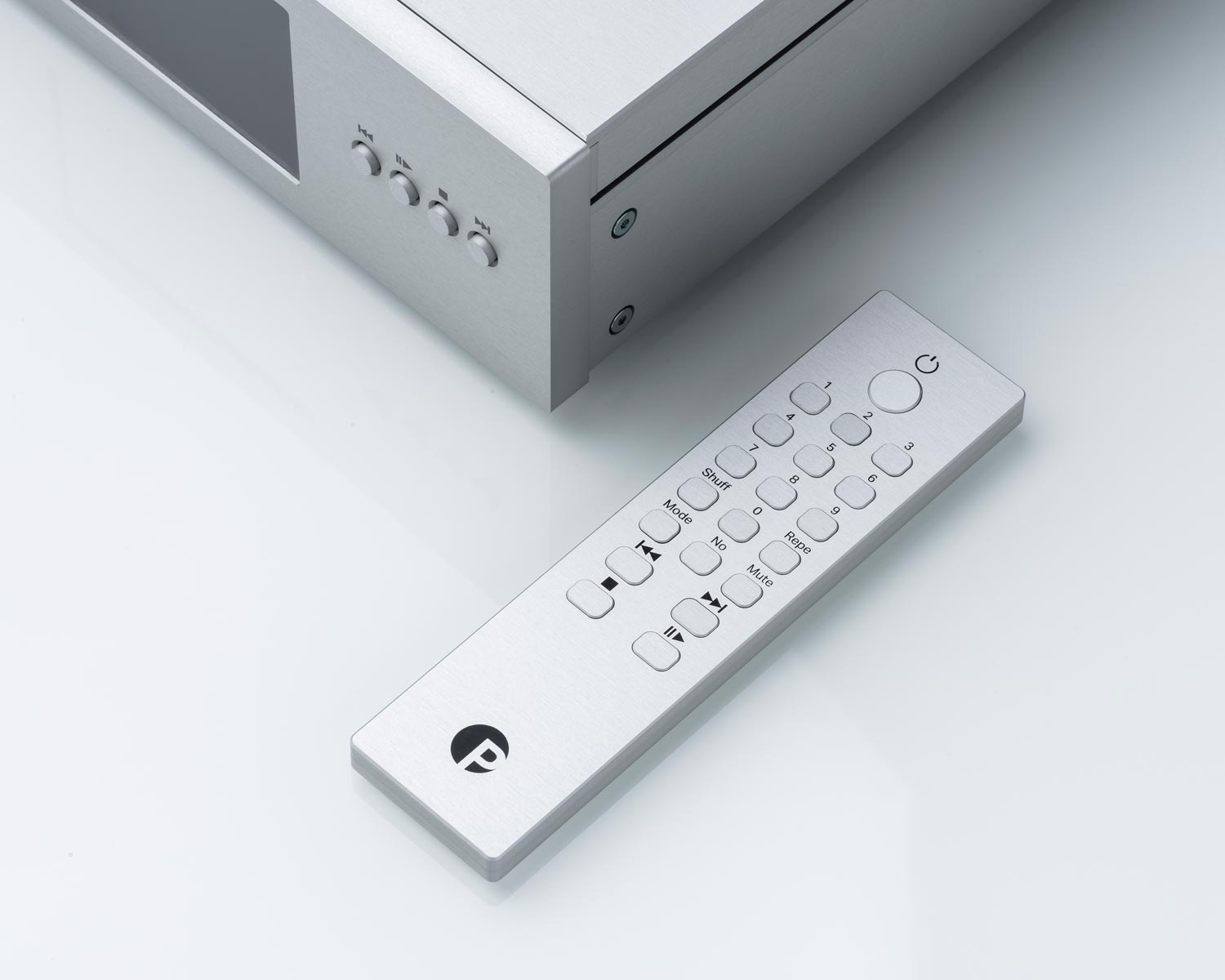 CD Box RS2 T leveres i et smukt, præcisionsforarbejdet aluminiumskabinet i enten sort eller sølv. En fjernbetjening i fuld aluminium medfølger ligeledes.