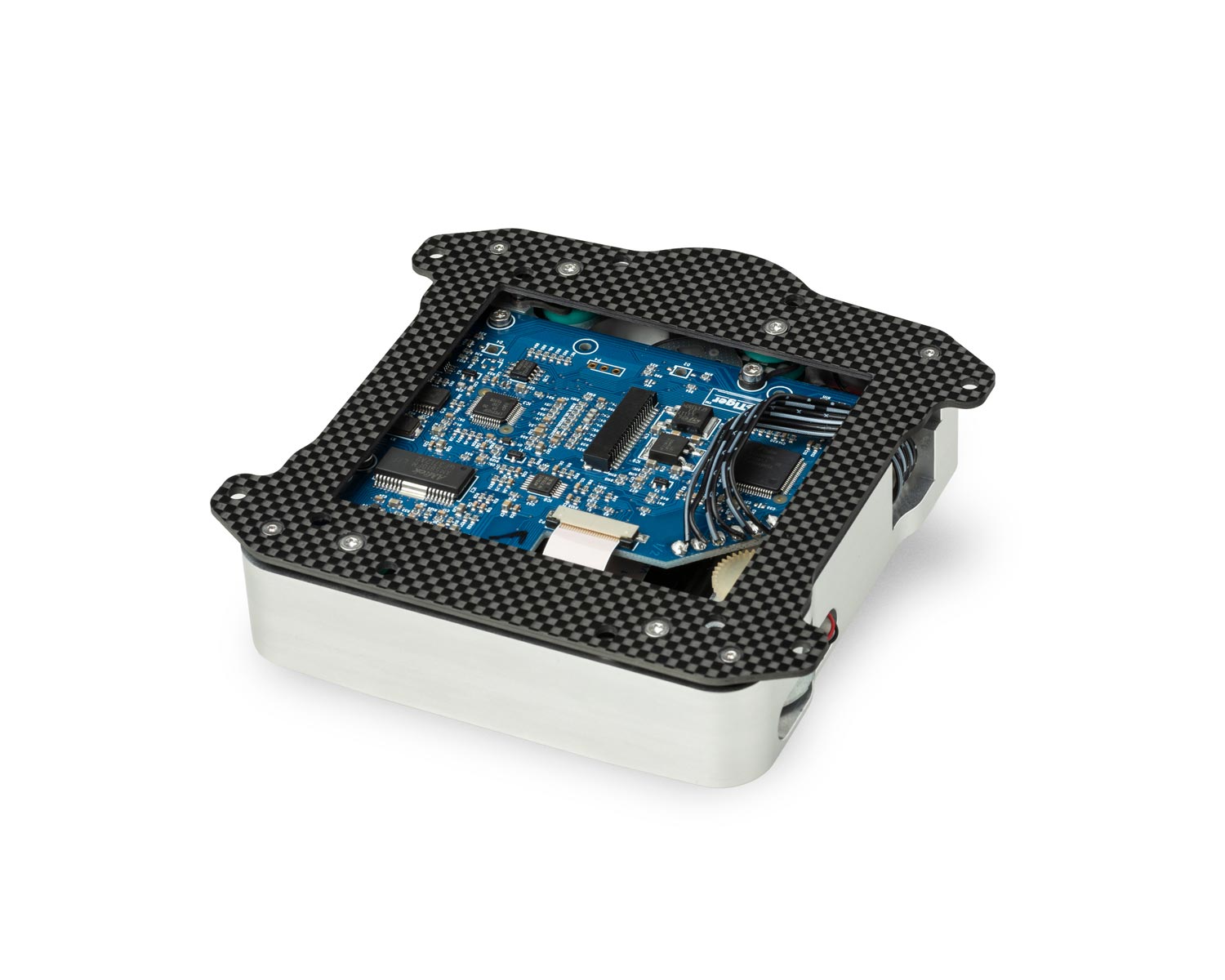 Vibrationsdæmpere er monteret på det ekstremt stive kulfiberchassis, hvilket yderligere isolerer CD-mekanismen. Samtidig er hele chassiset solidt forbundet med kabinettet på CD Box RS2 T. Denne konstruktion giver enestående stivhed kombineret med effektiv isolation mod vibrationer i hele frekvensområdet. CD-mekanismen er desuden udstyret med en forbedret puck i en ny aluminiumslegering, perfekt afbalanceret for optimal kontakt mellem skive og drev, hvilket sikrer jævn rotation og fejlfri aflæsning.