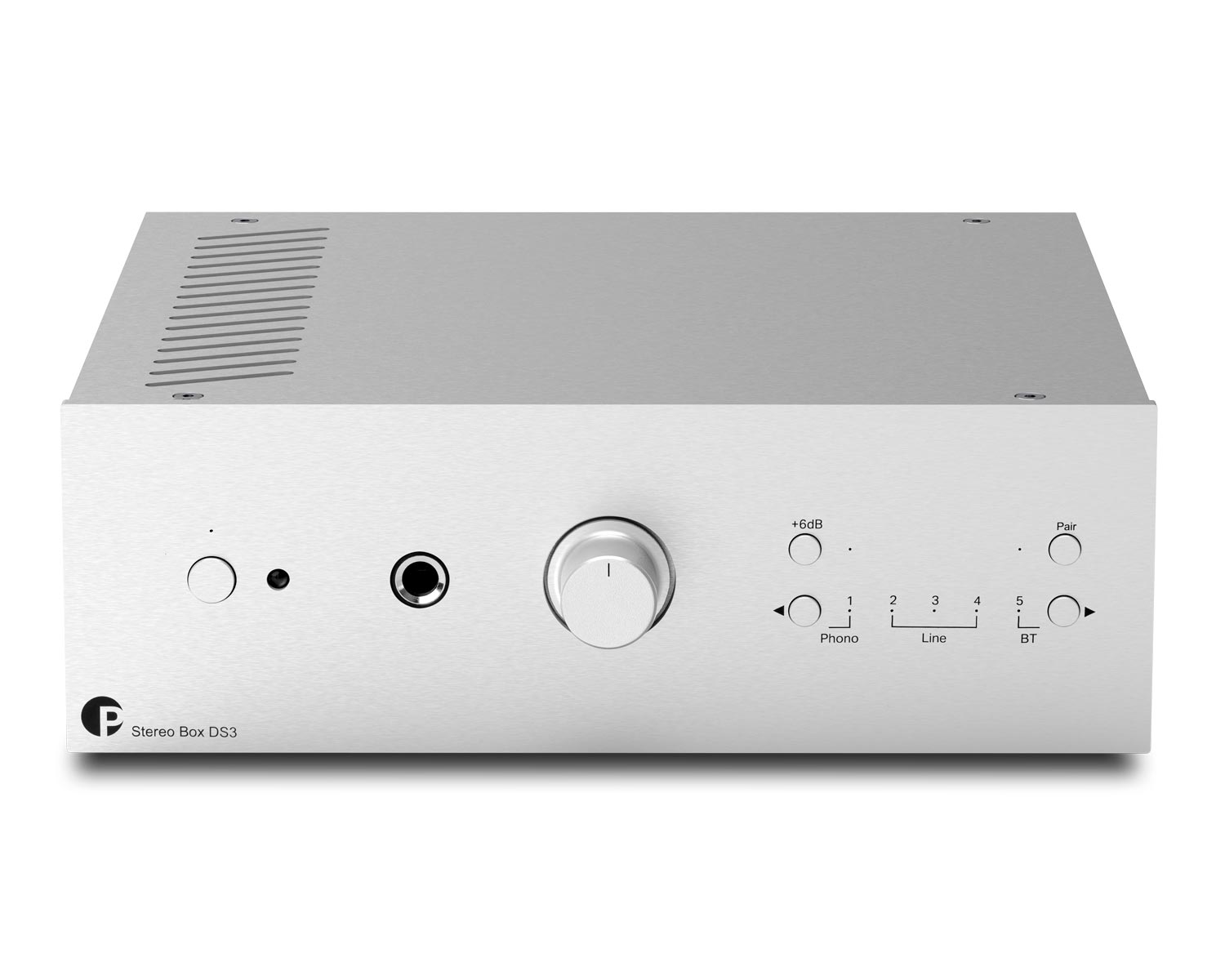 Pro-Ject Stereo Box DS3 er en kompakt konstruktion, i et enkelt og elegant design som fås i sort eller sølv. Med en bredde på kun 20 cm, er der rigeligt med muligheder for at integrere den i et moderne stuemiljø, hvor man ønsker en diskret løsning, og på samme tid en høj lydkvalitet. Som de resterende produkter fra østrigske Pro-Ject, så er Stereo Box DS3 også produceret i Europa, med fokus på kvalitet og lang levetid. Forstærkeren leverer 2 x 150 watt i 4 Ohm (80 watt i 8 Ohm) og kan trække et stort udvalg af højttalere.