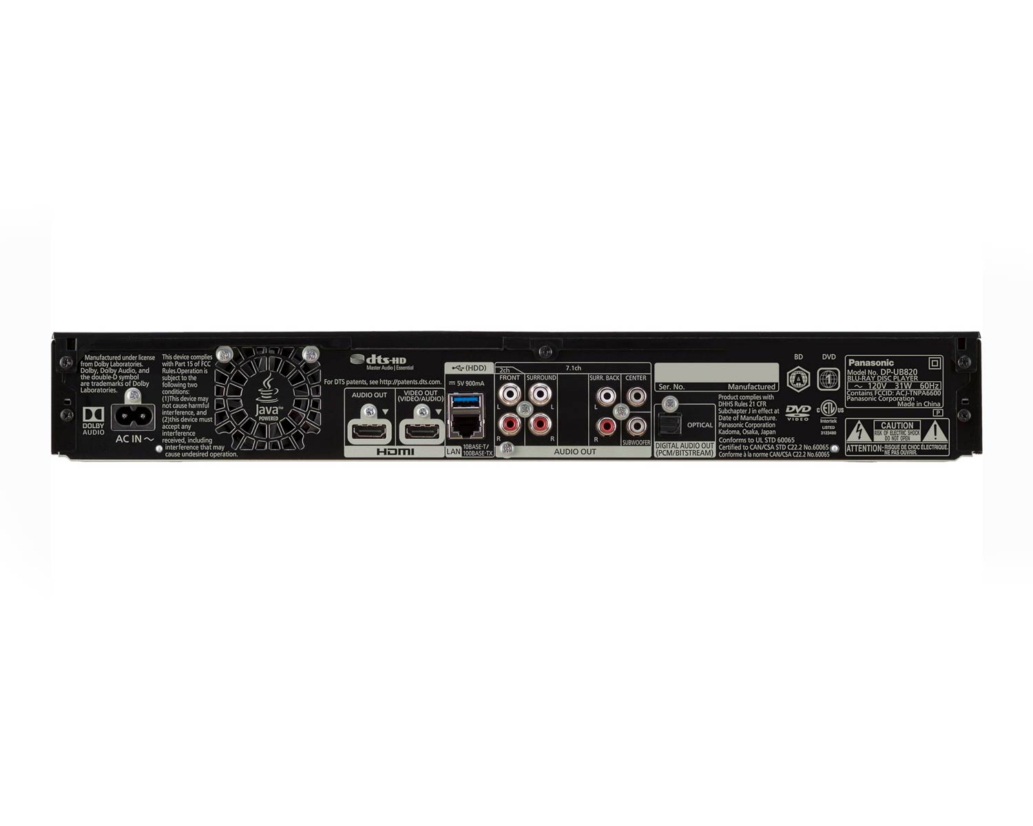 DP-UB820 afspiller både 4K UHD Blu-ray, standard Blu-ray og DVD’er. Udover afspilning af fysiske medier, har den også Netflix indbygget. Det fungerer dog ikke lige så godt som det gør på eks. et smart TV, en Apple TV eller Chromecast-enhed, så det er ikke den funktion du skal købe afspilleren for. Og når du først har fået smag for kvaliteten på de fysiske skiver, er streamingtjenesten heller ikke hvor du vil bruge din tid. Afspilleren understøtter både afkodning og bitstream af Dolby Digital True HD og DD Plus, samt DTS HDMA og DTS HD High Resolution Audio. Dolby Atmos og DTS:X er understøttet med bitstream over HDMI.