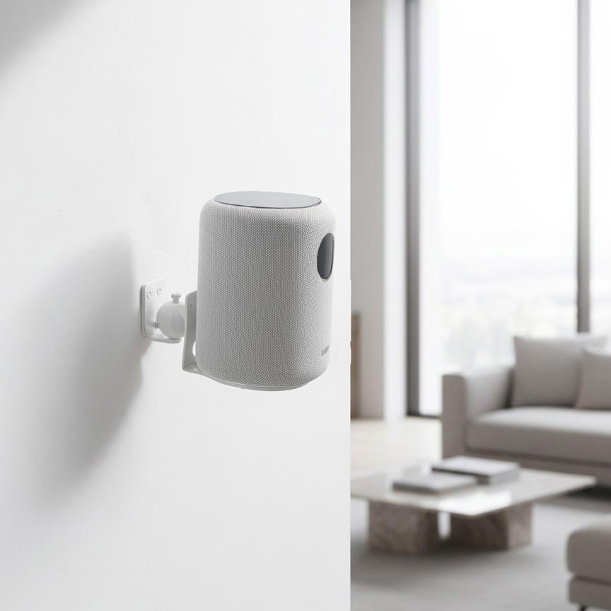 Med dette vægbeslag kan du få din Sound-højttaler fra WiiM monteret på væggen. Beslaget kan justeres 130 grader horisontalt og 60 grader vertikalt. Højttaleren fastmonteres med skruer, som også er inkluderet i pakken.