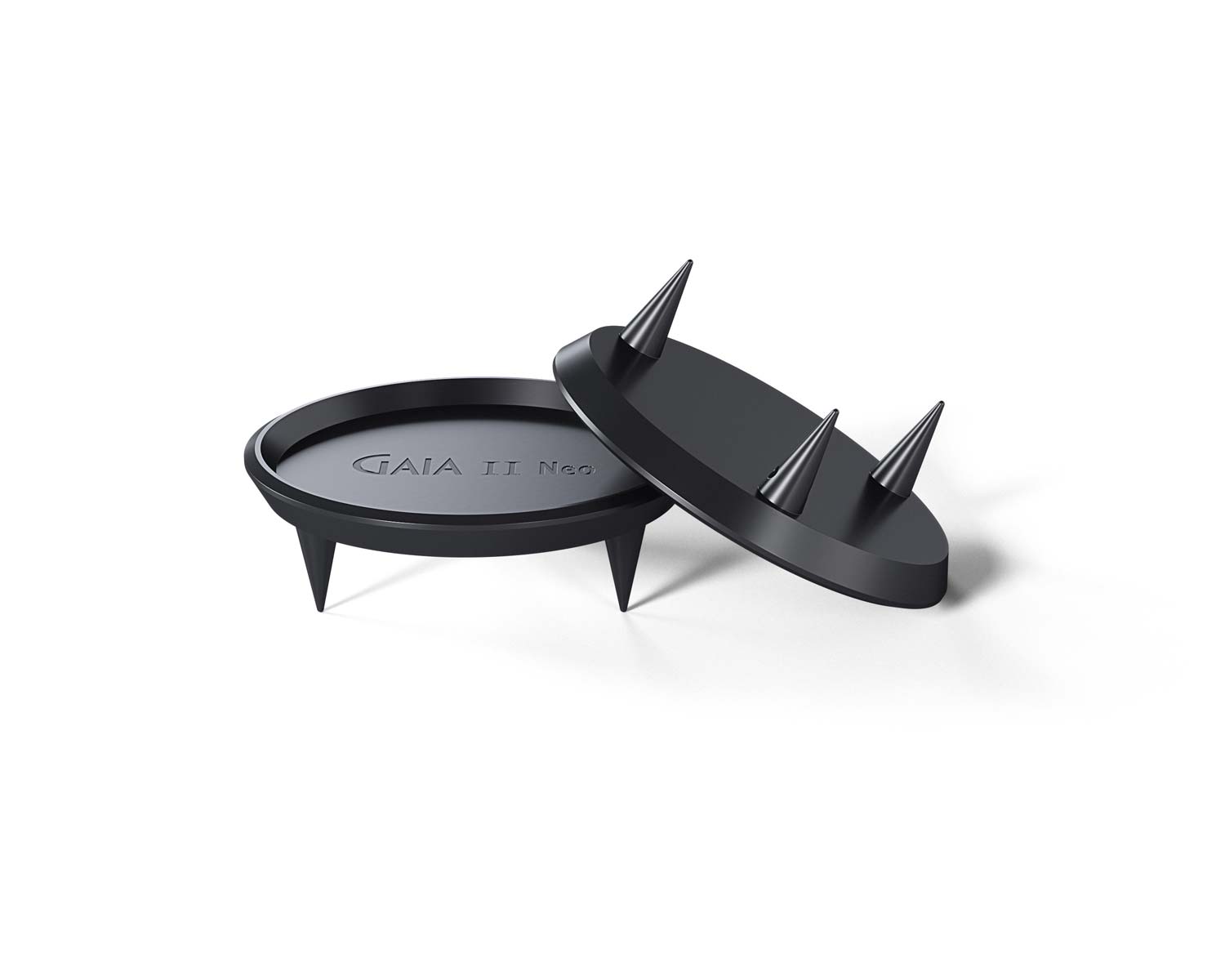 Hvis du skal bruge IsoAcoustics Gaia afkoblingsfødder på dine højttalere, og de står på et tykt gulvtæppe, skal du bruge disse spike-underlag. Gaia-fødderne står på spike-underlaget, hvis spikes går gennem tæppet, ned i det hårde gulv og skaber en kobling til underlaget. Disse Carpet Discs er lavet specifikt til de respektive versioner af IsoAcoustics Gaia, så vælg den der passer til de Gaia-fødder du har, eller påtænker at købe.